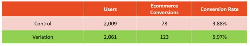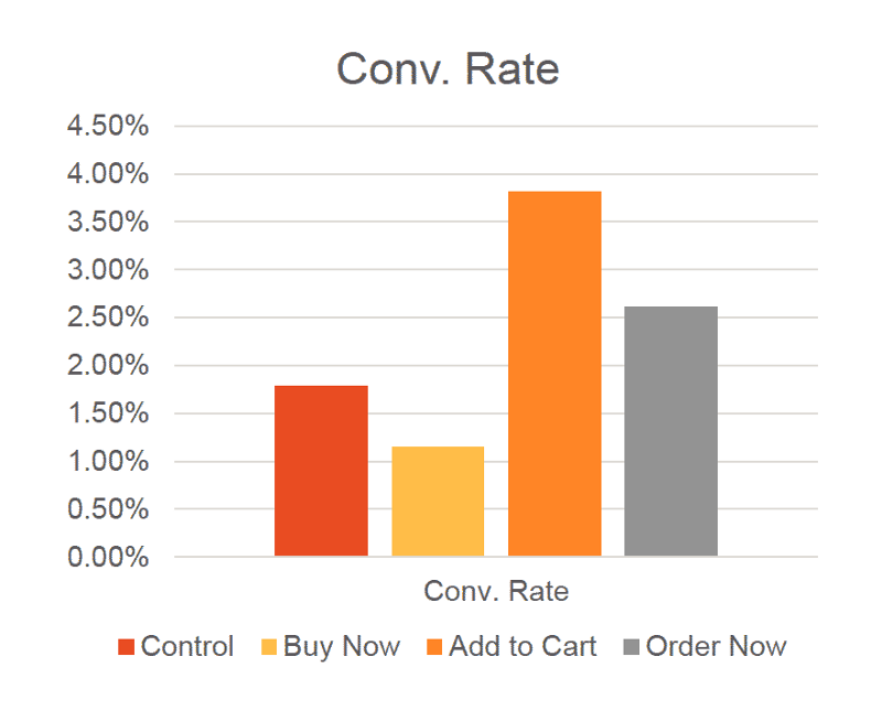 After running the test with 2800+ users, we determined quite conclusively that “Add to Cart” was the best conversion-driven CTA. Its conversion rate was 2% greater than the incumbent CTA, with a 100% degree of certainty.